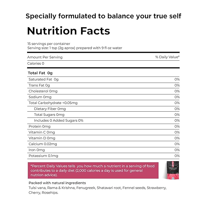 - Naturally Crafted for You: Our Loose-leaf Tea brings together the natural goodness of fenugreek, Shatavari root, Fennel Seeds, strawberry, cherry, and rosehips. These ingredients are traditionally associated with supporting women's wellness, making this blend a delightful part of your daily self-care ritual.
