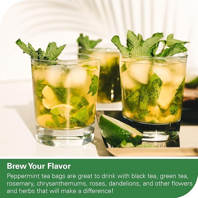 - 【Cool & Refreshing】A marvelous, brisk peppermint tea bag with an aromatic, refreshing and cooling minty herbal flavor. This cooling tea is perfect for after a meal and is delicious hot or iced!