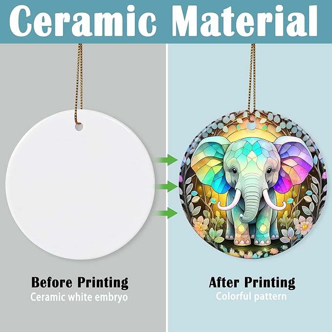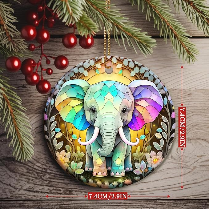 Colorful Ceramic Elephant Christmas Ornament, Holiday Decorations for Tree, Christmas Decor, Elephant Lovers Gifts, Ornament Gift Ideas