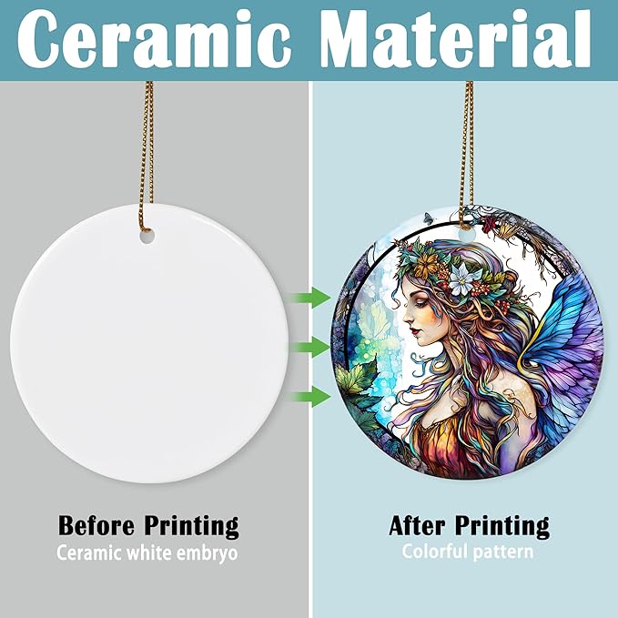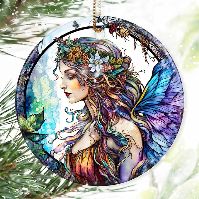 Colorful Ceramic Fairy Christmas Ornament, Fairy Ornaments for Christmas Tree, Holiday Decorations, Christmas Decor, Fairy Gifts, Fairy Lovers, Christmas Ornament Gift Ideas - Pattern B