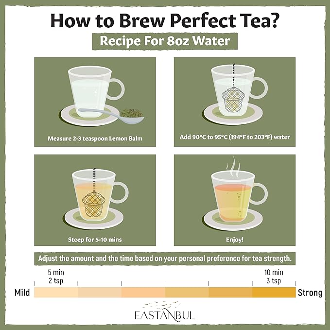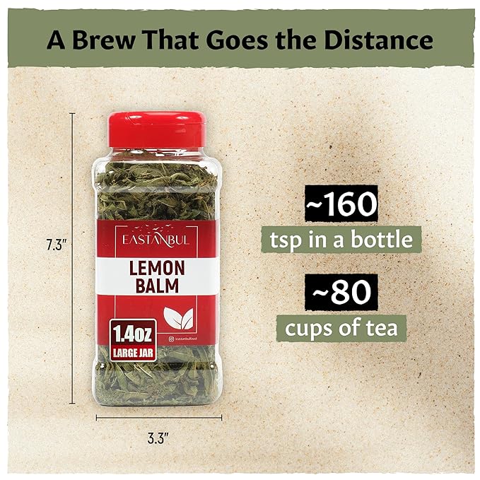 Eastanbul Lemon Balm Leaf, 1.4oz Lemon Balm Tea Loose Leaf & Pure, Melissa Tea, Te De Toronjil Morado, Dried Herb, Natural, No Caffeine, Natural, Vegan, Non GMO