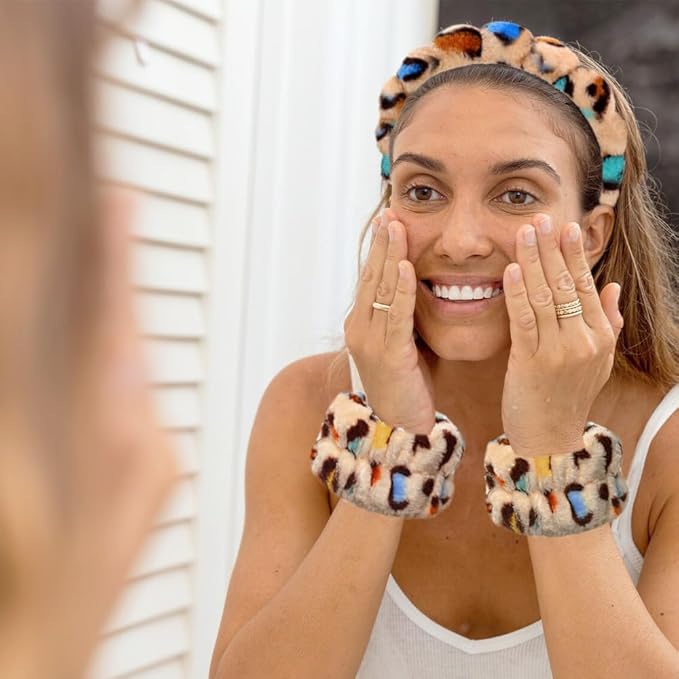 - 🌸【SPA HEADBAND and WRISTBAND MATERIAL SET】: When you wash your face, do you still suffer from your hair getting wet, water running down your arms to your sleeves, and staining your clothes? Our skincare headbands can prevent hair from falling in front of your face while washing your face, and keep your hair dry, the wrist strap prevents the liquid from spreading down the arm, comfort and ease of use. Our Spa headband and wristband set is the perfect solution