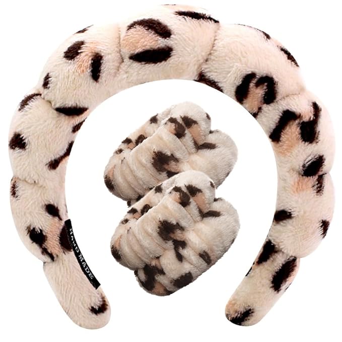 - 🌸【MULTIFUNCTIONAL HAIRBAND】: Wearing this bubbly fluffy cloud headband while washing your face is a game changer. This sponge headband may also come in handy for absorbing sweat during yoga or keeping your hair in place while applying make up. Spa headband for womengirls beauty gifts won't influence your makeup and it can easily fix your hair when removing makeup, washing your face, applying a facial mask, and spa. You can use this set as a daily wearable he