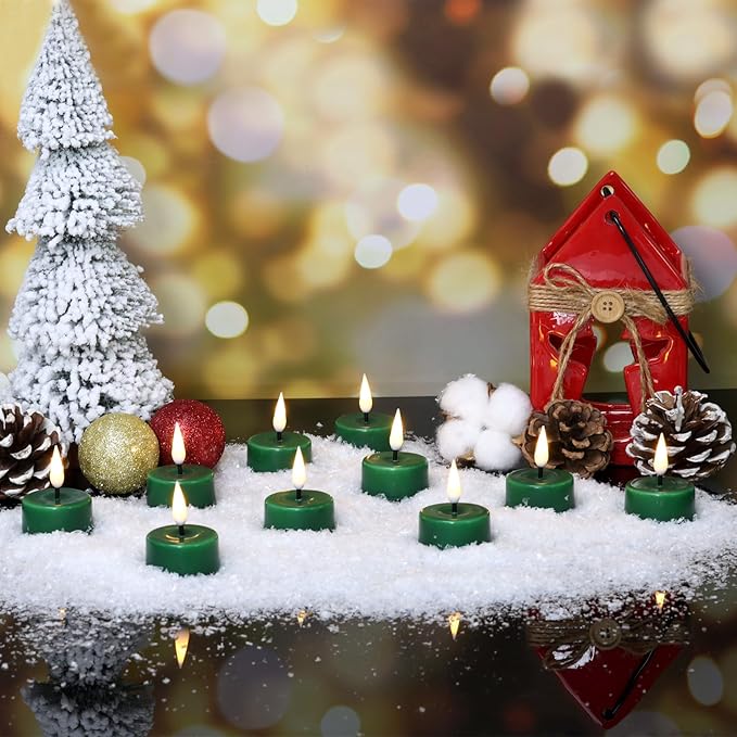 Eywamage Green Flameless LED Wax Tealights with Remote Batteries, Flickering Battery Colored Tea Votive Candles Set of 10