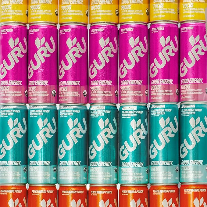 - SPREAD FEEL GOOD ENERGY: Organic energy drinks crafts with plant based ingredients. GURU is about helping you blaze new trails, reach new heights, and find your true nature. Help us share good energy, inspire communities and be a GURU to others!