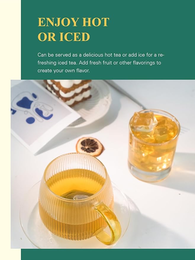 - [100 COUNT ECO-CONSCIOUS TEA BAGS] - Our premium tea bags are made from non-GMO plant fiber, and tea bags are unbleached and compostable. No string and no tag. No extra waste - just healthy & delicious tea!