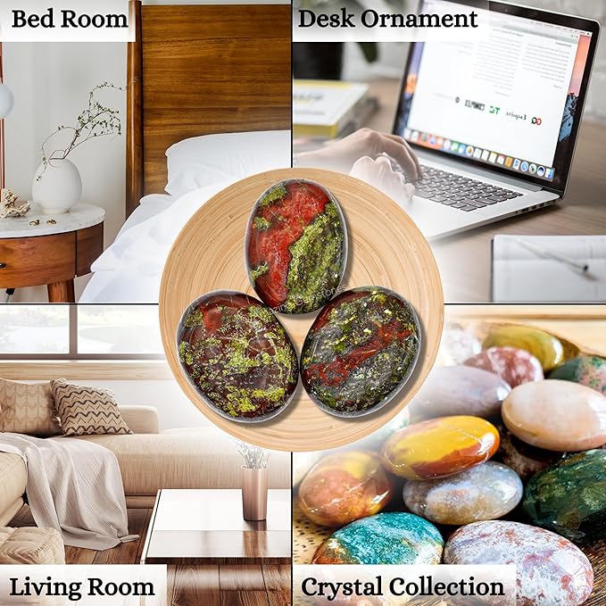 - Versatile and Multi-purpose : Our dragon bloodstone palm stone is versatile, suitable as christmas stocking stuffers and even as ester basket stuffers. These palm stones and crystals gemstones can be used for yoga meditation, decoration, and healing.