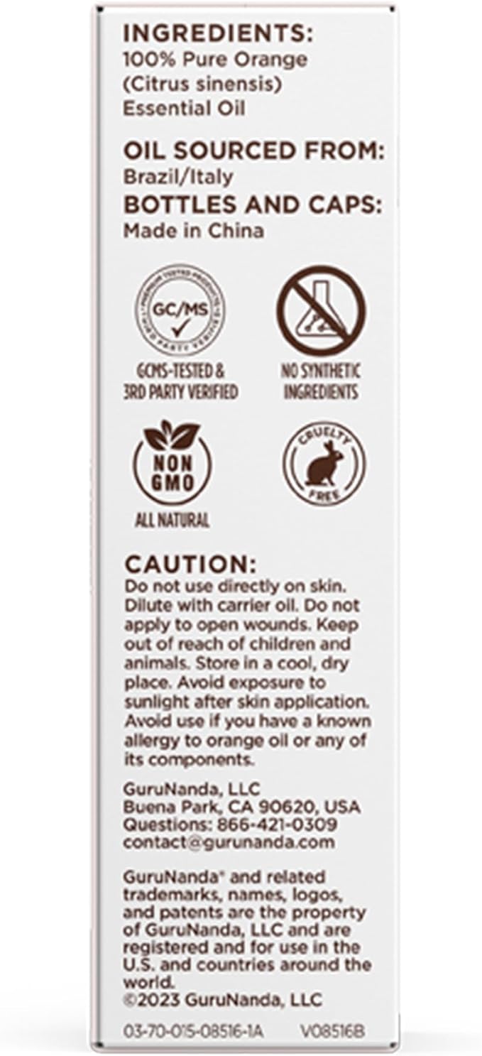 GuruNanda Orange Essential Oil, 100% Pure, Natural & Undiluted Aromatherapy Oil for Diffusers & DIY Recipes, Uplifts Mood & Supports Glowing Skin (0.5 Fl Oz)
