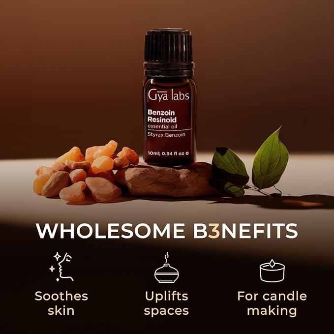 - Quality assured for your peace of mind. Gya Labs benzoin resinoid oil is and underwent strict quality controls. Consult a doctor if you have any medical concerns.