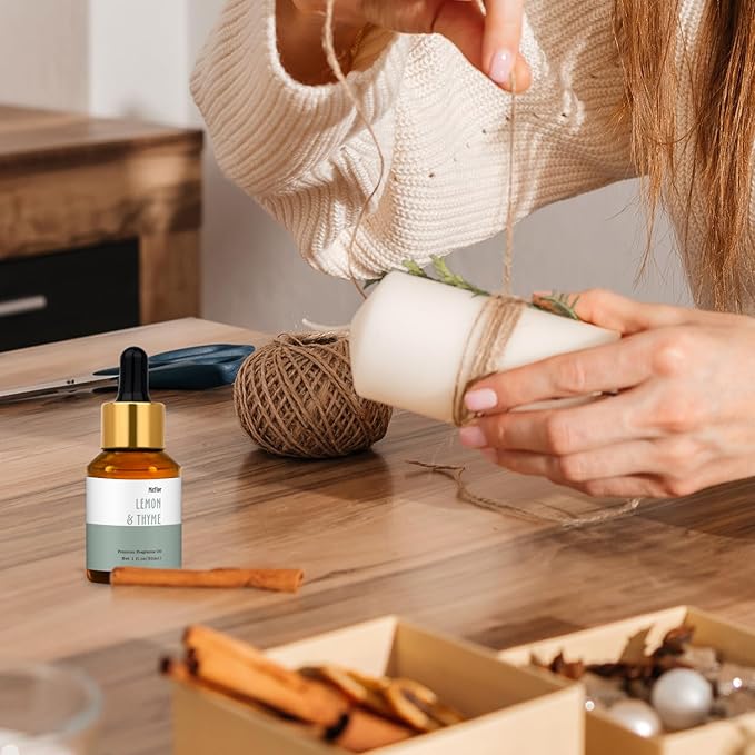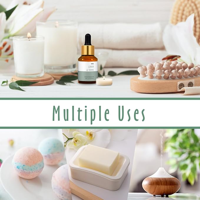 - This lemon & thyme fragrance oil includes a refreshing and aromatic fragrance that combines the bright citrus notes of lemon with the herbal and earthy tones of thyme, evoking the feeling of being in a sunlit garden, surrounded by aromatic herbs