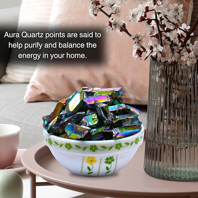 - Natural - You will receive authentic raw stones crystals, titanium aura quartz is thought to enhance vitality, mental clarity, and spiritual insight, promoting a harmonious balance of energy.