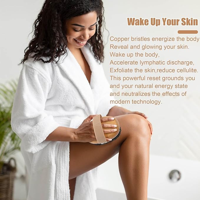 - Effect:Our dry body brush is made with ion charged copper bristles can create negative ions naturally. Perfect for accelerates lymphatic drainage,exfoliation,scrub dead Skin,unclogged pores,smoother and softer skin,Cellulite.