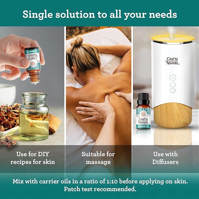 GuruNanda Rosemary Essential Oil, 100% Pure, Natural and Undiluted Diffuser Oil for Aromatherapy, Massages & DIY Recipies, Promotes Sense of Clarity & Supports Supple Hair (0.5 fl Oz)