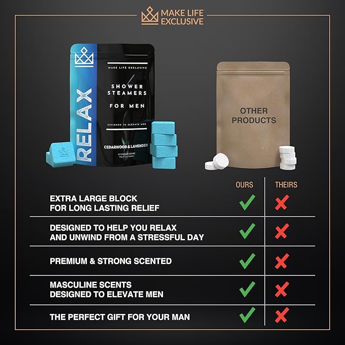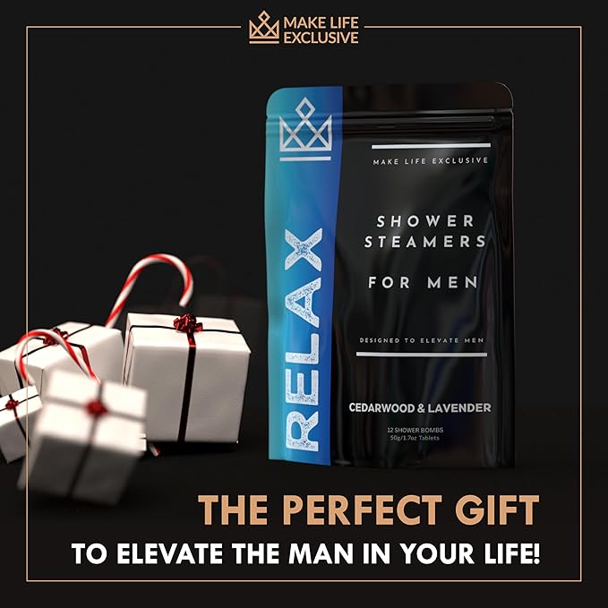 Shower Steamers for Men - Relax - Cedarwood and Lavender Organic Shower Bombs - 12 Pack of Relaxing Tablets - Strong Scented Long Lasting Aromatic Steamers