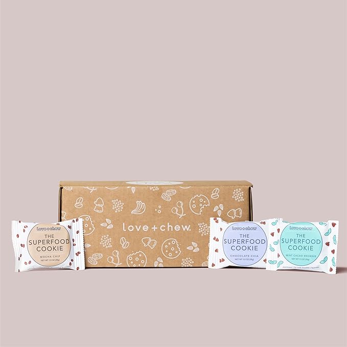 Love + Chew Soft Baked Protein Cookies, Gluten Free | (18) Count Chocolate Lover Minis Variety Pack | Vegan, Paleo, Non GMO and Packed with Superfoods. - Individually Wrapped, and Made from High Protein Almonds