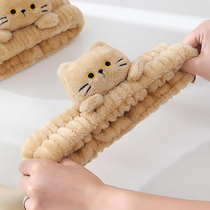 PERFECTSIGHT Spa Headband for Washing Face, 2 Pack Cute Hair Band for Shower Yoga Beauty Skincar Party, Soft Fluffy Makeup Headband, Kawaii Facial Headbands for Woman Girls, Kitty