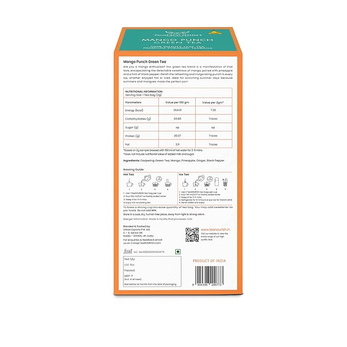 TeaNOURISH Mango Punch Green Tea | 20 Count Pyramid Tea Bags | Darjeeling Whole Tea | Delicious Fruit Infusion | Real Mango | 100% NATURAL INGREDIENTS