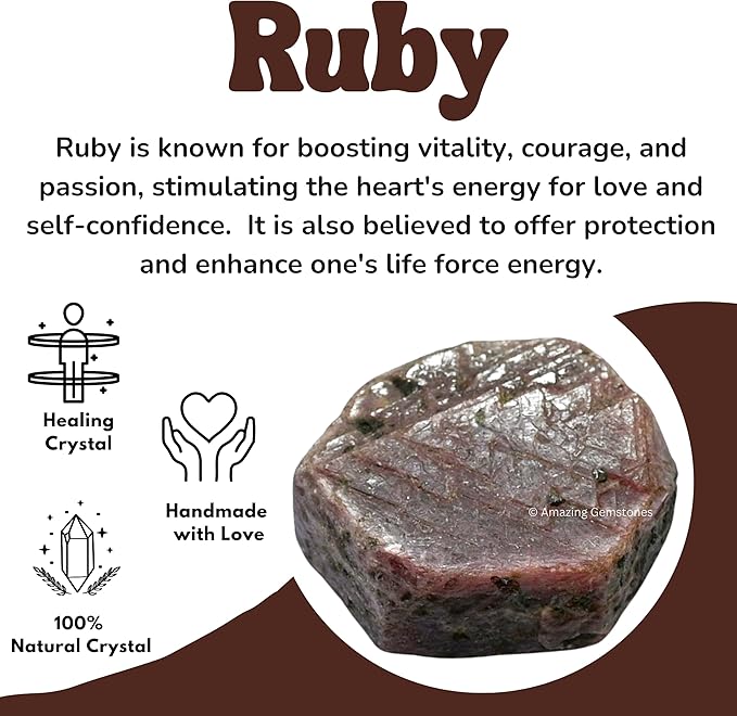 - Natural - You will receive authentic raw stones crystals, ruby is a stone of passion and vitality, enhances courage and self-confidence, empowering you to pursue your goals with zeal.