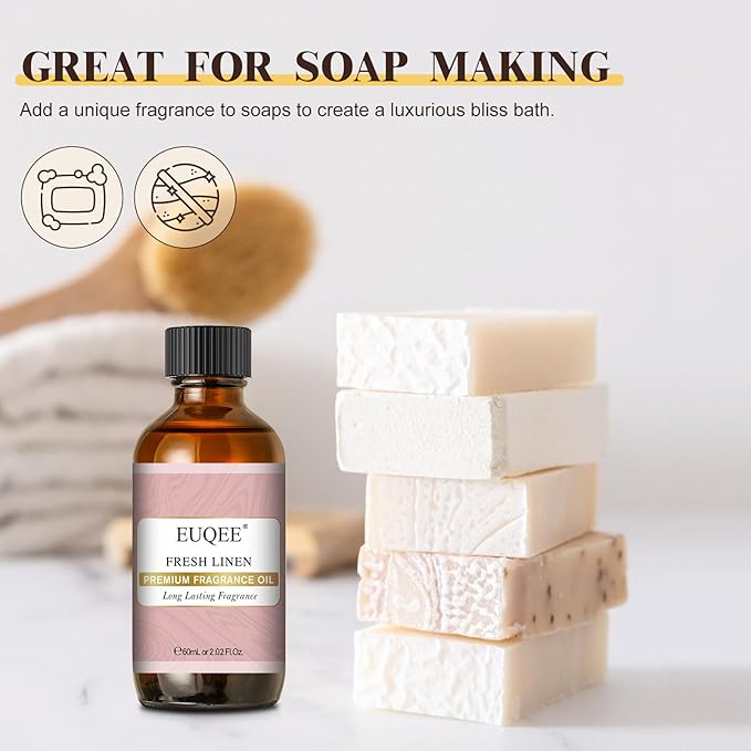 EUQEE Fresh Linen Fragrance Oil 60ml Premium Fragrance Essential Oil for Aromatherapy, Diffusers, DIY Bath Bombs, Candle Making (2.02 Fl oz)