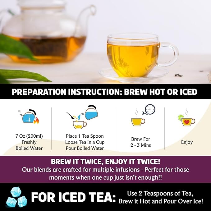- REAL INGREDIENTS - Premium quality loose leaf tea sourced from the picturesque hills of Darjeeling, renowned for its unique flavor and aroma. Offers a delicate and refreshing taste with floral notes, perfect for a soothing cup any time of the day.