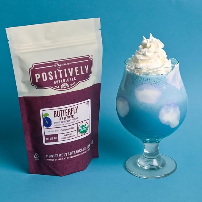 Organic Positively Botanicals Company, Butterfly Pea Flower, Herbal Tea Loose Leaf Botanical, 4 Ounce
