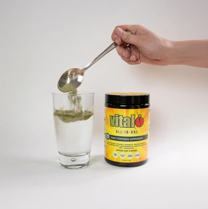 Vital All-in-One Daily Powdered Supplement - Natural Greens Superfood Powder for Energy & Health, Super Greens Powder Drink Mix with Probiotic & Antioxidant Support - Lemon & Ginger, 4.23 oz (120 g)