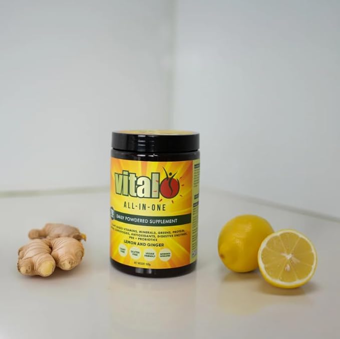 Vital All-in-One Daily Powdered Supplement - Natural Greens Superfood Powder for Energy & Health, Super Greens Powder Drink Mix with Probiotic & Antioxidant Support - Lemon & Ginger, 10.58 oz (300 g)