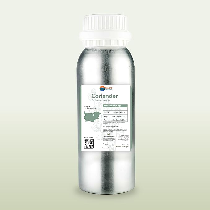 - BALKAN MOUNTAIN EXCELLENCE: 100% pure coriander seed oil from 30+ years of Bulgarian organic cultivation expertise, steam distilled for premium therapeutic grade purity