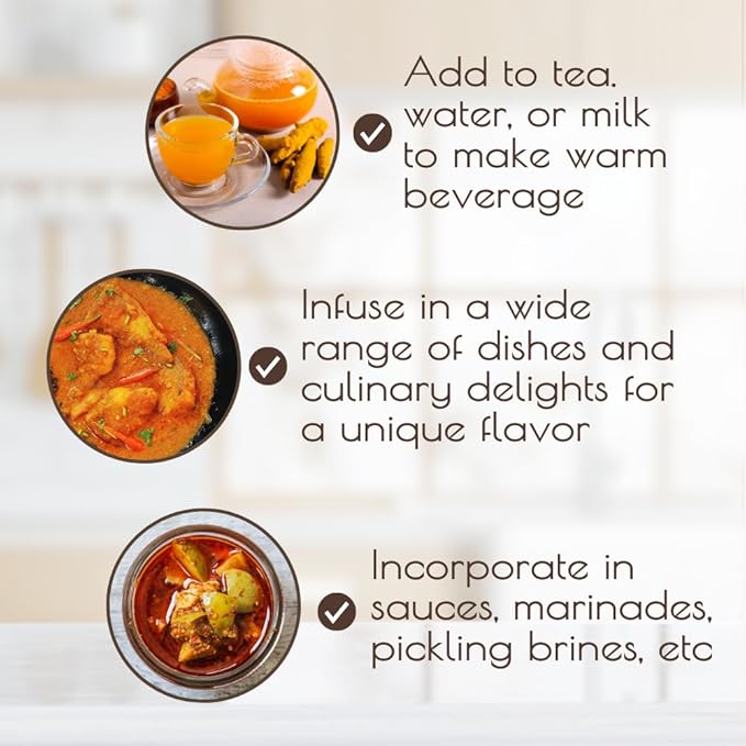 - Vibrant, Earthy Flavor for Culinary Excellence: Enhance the taste of your favorite dishes with our turmeric rootβs peppery, spicy essence. Perfect for curries, teas, and marinades, the earthy aroma and vibrant color uplift every meal.