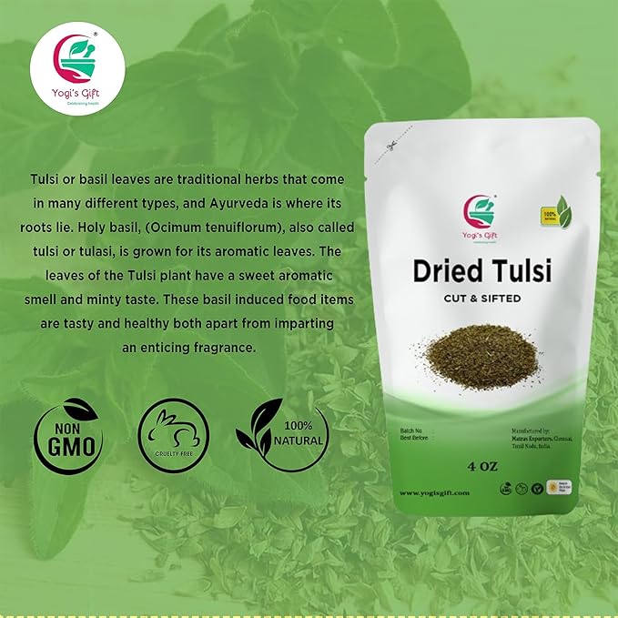 Dried Tulsi | Holy Basil Leaf Tea 4 oz | Relaxing and Calming Tea | 100% Natural | by Yogi's Gift®