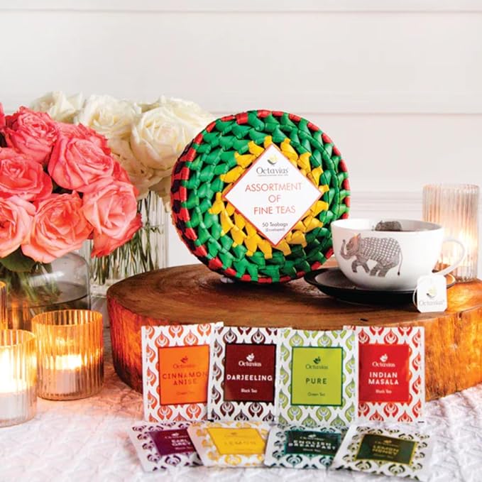 Octavius Tea Sampler Pack | 8 Assorted Black & Green Teas | 50 Teabags | Tea Sampler Variety Pack | Pack of 1