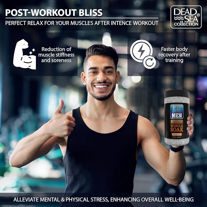 Dead Sea Collection Bath Salts for Men with Citrus Oil - Muscle Recovery Bath Soak – Mens Pure Dead Sea Salt for Soothing and Relaxing – 37 Oz