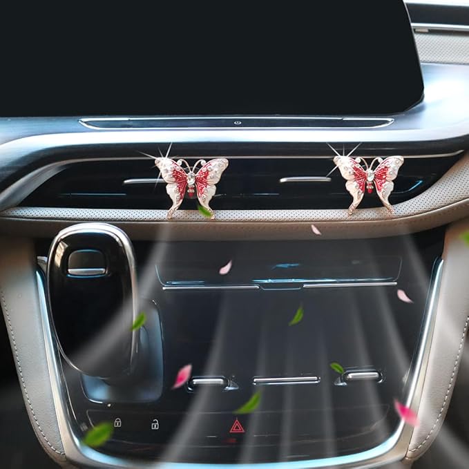 - Product Function: The Butterfly Red Car Accessories Are Bling And Cute Appearance, Elevate The Car Decorations Interior Aesthetic.Refillable Car Air Freshener Clips, Improve The Car Scents. Exquisite,practical,save Space