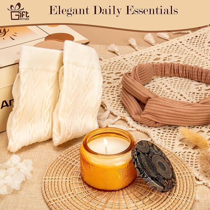 - SELF CARE GIFT: The care package contains 7 practical items, including a bohemian print eggshell cup, a soft knitted blanket with tassels (31.5 x 43.31 inch), an amber ebony scented candle, a chic boho bracelet, unique western earrings, a versatile headband, and comfortable socks. Each item is carefully designed to ensure a head-to-toe Bohemian experience