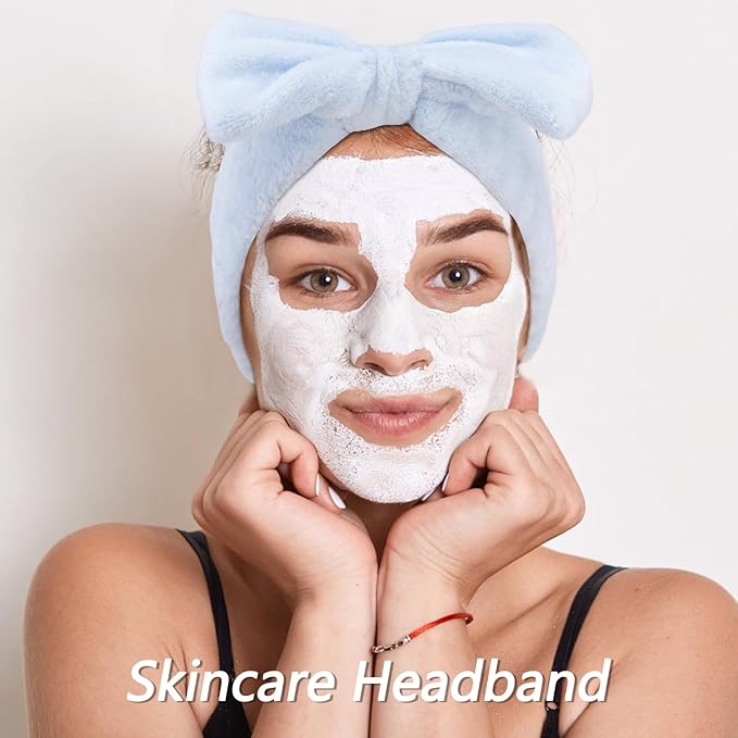 VELSCRUN Spa Headbands for Wash Face, Makeup Headband, Facial Skincare Headbands, 5 Pcs Blue Puffy Sponge Spa Headband Bow Tie Hair Band Hair Clips Wristband Set Women Girls Accessories