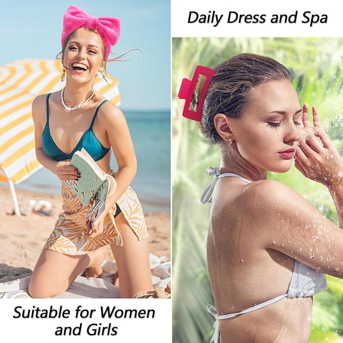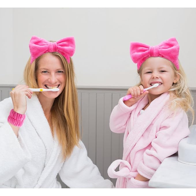 VELSCRUN Spa Headbands for Wash Face, Makeup Headband, Facial Skincare Headbands, 5 Pcs Hot Pink Puffy Sponge Spa Headband Bow Tie Hair Band Hair Clips Wristband Set Women Girls Accessories