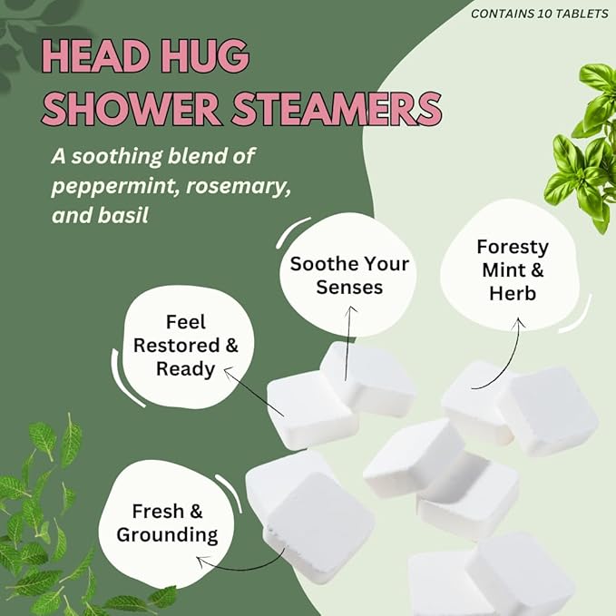Head Hug Shower Steamers Aromatherapy for Relief - USA Made - Peppermint & Rosemary Shower Bomb Tablets – Christmas Gift - Adult Stocking Stuffer – Soothing Natural Essential Oils (10 Pack)
