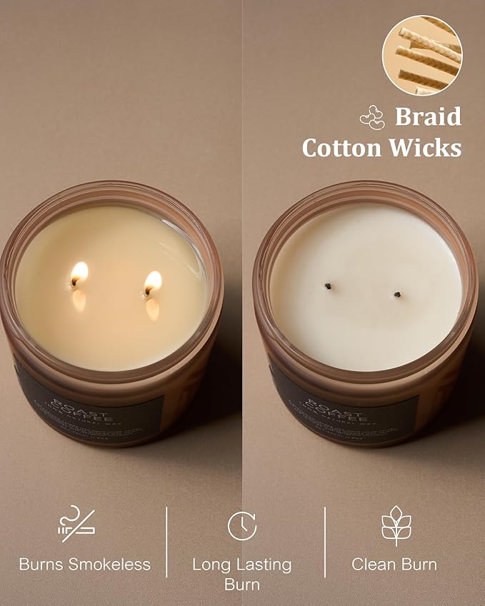 - š³ Clean Consistent & Even Burn - Using 2 American made lead-free cotton wicks for a even burn result. They're cotton flat braid wicks with paper throughout, providing increased rigidity and burn more consistently than 100% cotton wicks. Designed to reduce carbon buildup which leads to black soot.