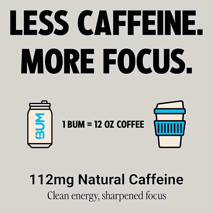 - BUM Sugar-Free Energy Drink - Lightly Carbonated & No Artificial Colors, Natural Caffeine & Citicoline for Energy & Focus, Brain Boost & Workout Sports Beverage - 12 oz, Pack of 12