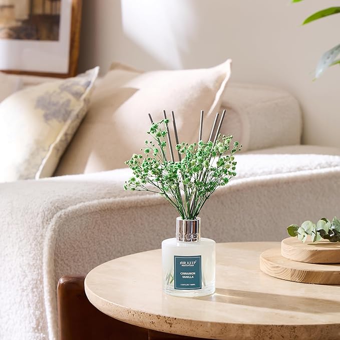 Airkeep Reed Diffuser Set,3.38 fl oz (100 ml) - Cinnamon Vanilla Oil Diffusers with 8 Reed Sticks, Home Fragrance Reed Diffuser for Bathroom Shelf Decor