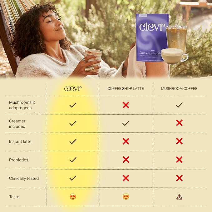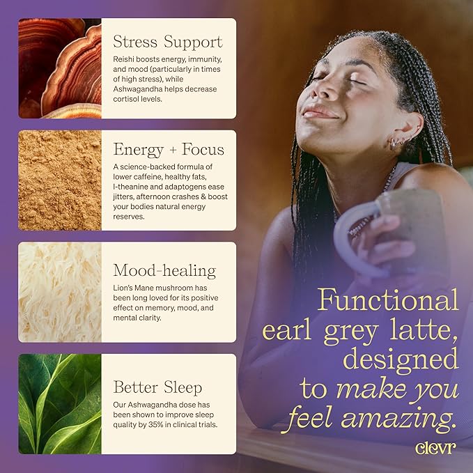 Clevr Blends London Fog Latte, Vegan, Earl Grey Instant Tea Mix, Superfood Powder Blend with Oat Milk, Black Tea, Reishi Mushroom, Organic Spices, Coconut Cream, Ashwagandha, Serve Hot or Iced, 12 oz
