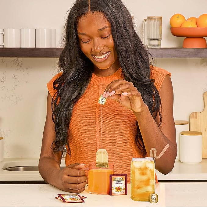 - FRESH FLAVOR: One box of 20 Peach & Orange Herbal Tea Bags by Twinings London