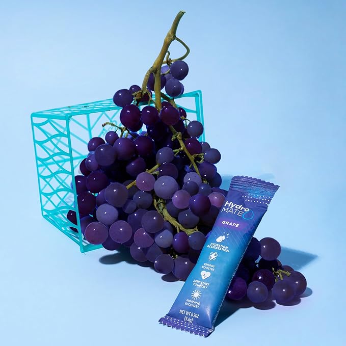 - HydroMate Grape Electrolytes Powder Packets Hydration Packs Individual Sticks