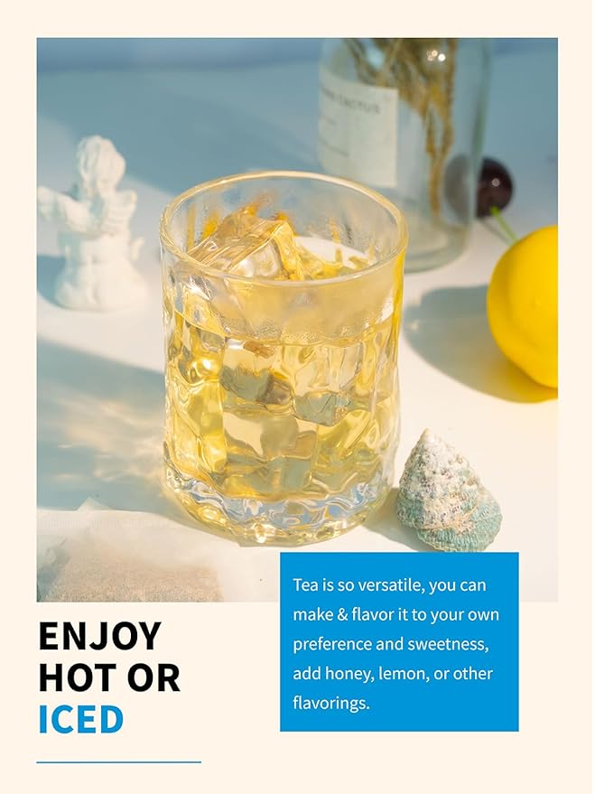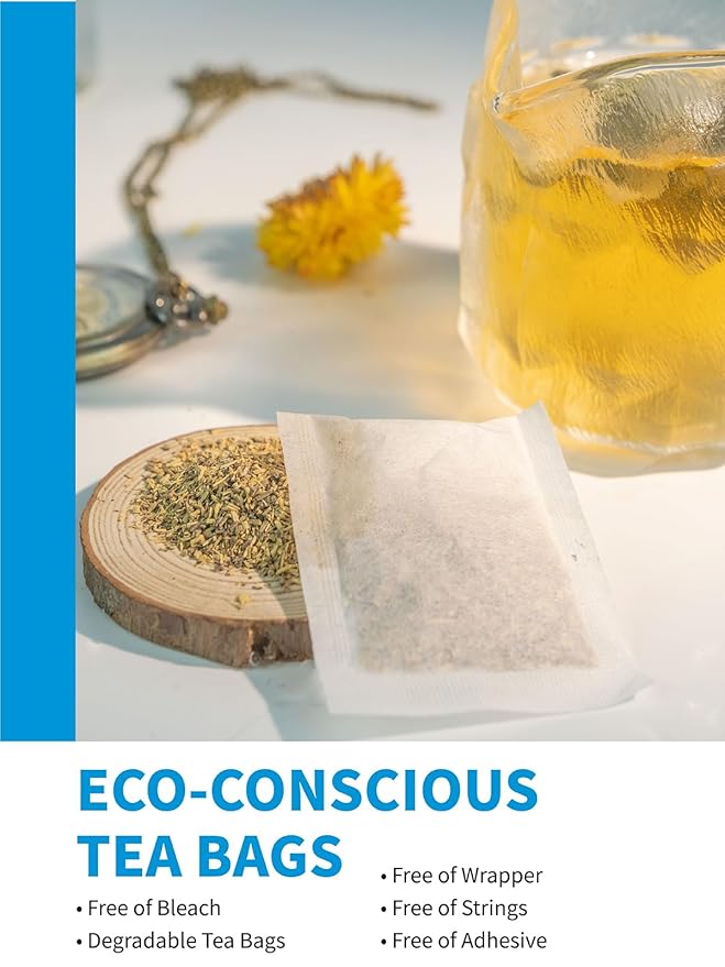 - [100 COUNT ECO-CONSCIOUS TEA BAGS] - Our premium tea bags are made from biodegradable non-GMO plant fiber. Packaged in a high-quality resealable foil-lined kraft pouch to keep tea fresh. No string and no tag. No extra waste - just healthy & delicious tea!