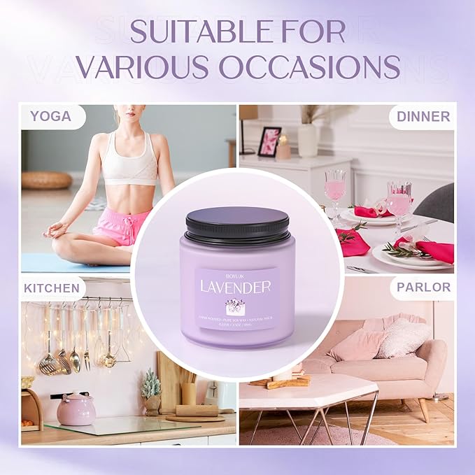 - 【Premium Scented Ingredients】 The gentle aroma emitted by our lavender scented candles aids in unwinding the nerves and alleviating stress. This offers you a moment of tranquility and comfort amidst the hustle and bustle of daily life.
