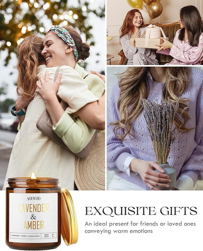 AOOVOO Lavender Amber Candles - 9 oz Scented Candles, Aromatherapy Candle, Soy Candle for Home Scented