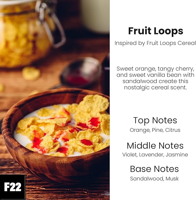 - Scent Notes: Sweet orange, tangy cherry, and sweet vanilla bean with sandalwood create this nostalgic cereal scent.