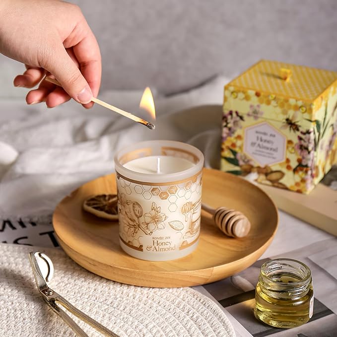 - Luxurious Honey & Almond Scent - The ROMIIE ZOI Aromatherapy Candle combines the sweet, comforting aroma of honey with the nutty richness of almond to create a fragrance that soothes the soul and calms the mind. It's an olfactory embrace, inviting you to unwind and indulge in the moment.