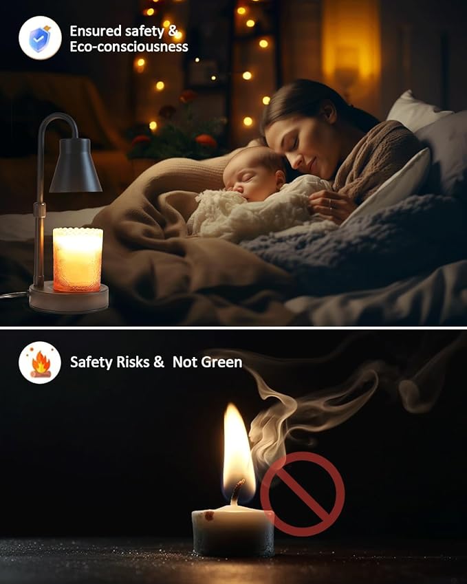 - Eco-conscious Performance: Our energy-efficient candle warmer lamp gently melts candles, ensuring safety from fire hazards and pollution. Flameless, smokeless, sootless, pollution-free, and mitigating the risk of fire.(Candles are not included)