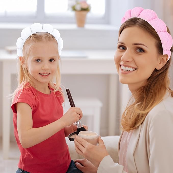 - [Soft & Comfortable] The spa headband hairband is made of high-quality sponge and terry cloth fabric, the sponge lining makes it extremely soft, cushy, and intimate to your skin. The spa headband for women are functional for washing face, makeup, mask routine, yoga, taking shower, birthday spa party and sleepover party.